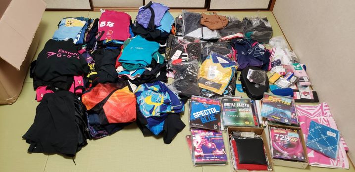 一人でこれだけの寄付をいただいたのは前例のないことです。本当に感謝しかありません。さすがにトップの選手・コーチになると半端ない量と質の卓球用具を使いこなしてきた半生の重みを感じさせます。これまで表ソフトのラバーは中古でもなかなか手に入らなかったので、助かります。前陣速攻の小野千代さんだからか、ユニフォームは私も好きな軽めのものが多いようでした。女性用の服は、サイズが小さめで、子どもたちはユニセックスで使えるのでちょうどいいですね。スカートタイプも最近ではトップ女性選手のあいだで着用されていますし、ラテンアメリカとかでは特によろこばれそうですね。小野千代さん、本当にありがとうございます。早い機会にペルー、ブータン、ミャンマーの子供たち、選手たちに配布する予定です。コロナが終息すれば、私自身で持っていきますが、郵送も考えています。小野千代さん、みなさん、これらの用具を使っている子供たちに一緒にコーチングに行きましょうね。