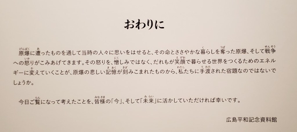 大阪オープンのあとで、広島を訪問しました。広島平和記念資料館は展示も新しく、筆舌に尽くしがたい惨劇と悲劇、そして平和への祈りと希望に、学ぶことばかりでした。”戦争への怒りを、憎しみではなく、だれもが笑顔で暮らせる世界をつくるためのエネルギーにしていくこと”を誓って。