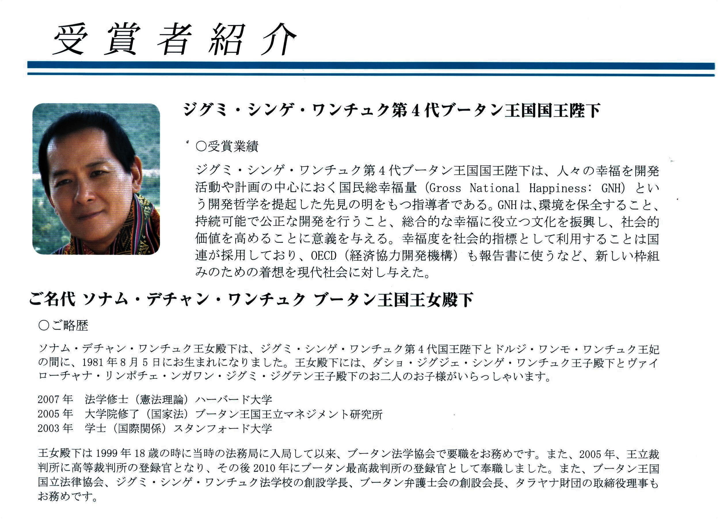 ブータン王国のソナム・ディチェン・ワンチュク王女の来日(Blue Planet Prizeを4代国王が受賞)