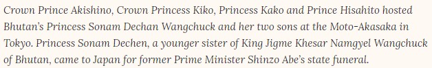 下記の記事と写真は、「New My Royal」Japanese Crown Prince family hosted Bhutan’s Princess Sonam Dechan (newmyroyals.com)からのものです。