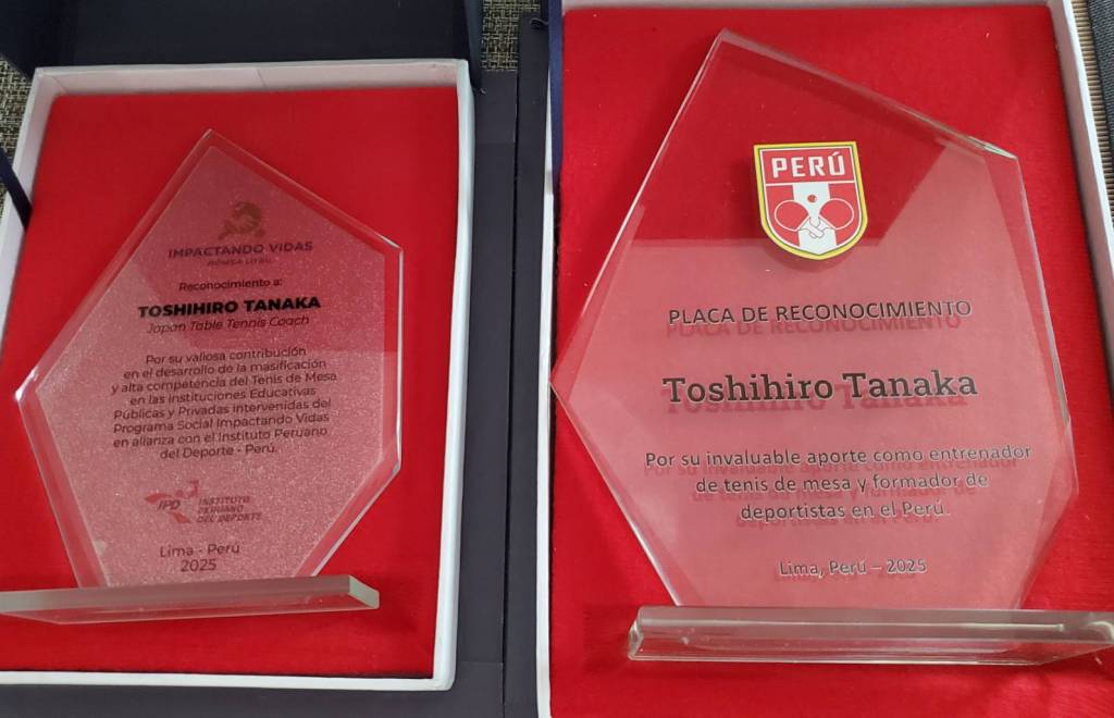 Together with Walter Nathan, my most respected brother of table tennis and life, we received a plaque of appreciation from the President of Peruvian Table Tennis Federation, Magali Montes, and the founder of Impactando Vidas Monica Liyau, for our long time efforts in developing this sport in Peru. It was a monent of great honor and pleasure for Walter san and myself with a sincere wish that our sporting spirits in life will be of use and serve good examples for those new and young generations of table tennis lovers in Peru. Viva Ping Pong Peru!!