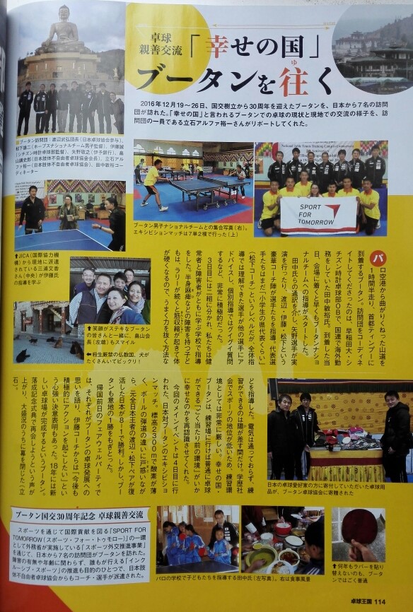 (下)2017年3月号の「卓球王国」に掲載された日本卓球協会によるブータン訪問団のレポート